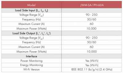The JWM-SA-1PH-60A solar analyzer is a dedicated metering device designed to be used with single phase solar inverters. Its primary function is to measure the power and energy of your grid input and load output and it is designed for use with inverters that lack integrated monitoring capabilities.